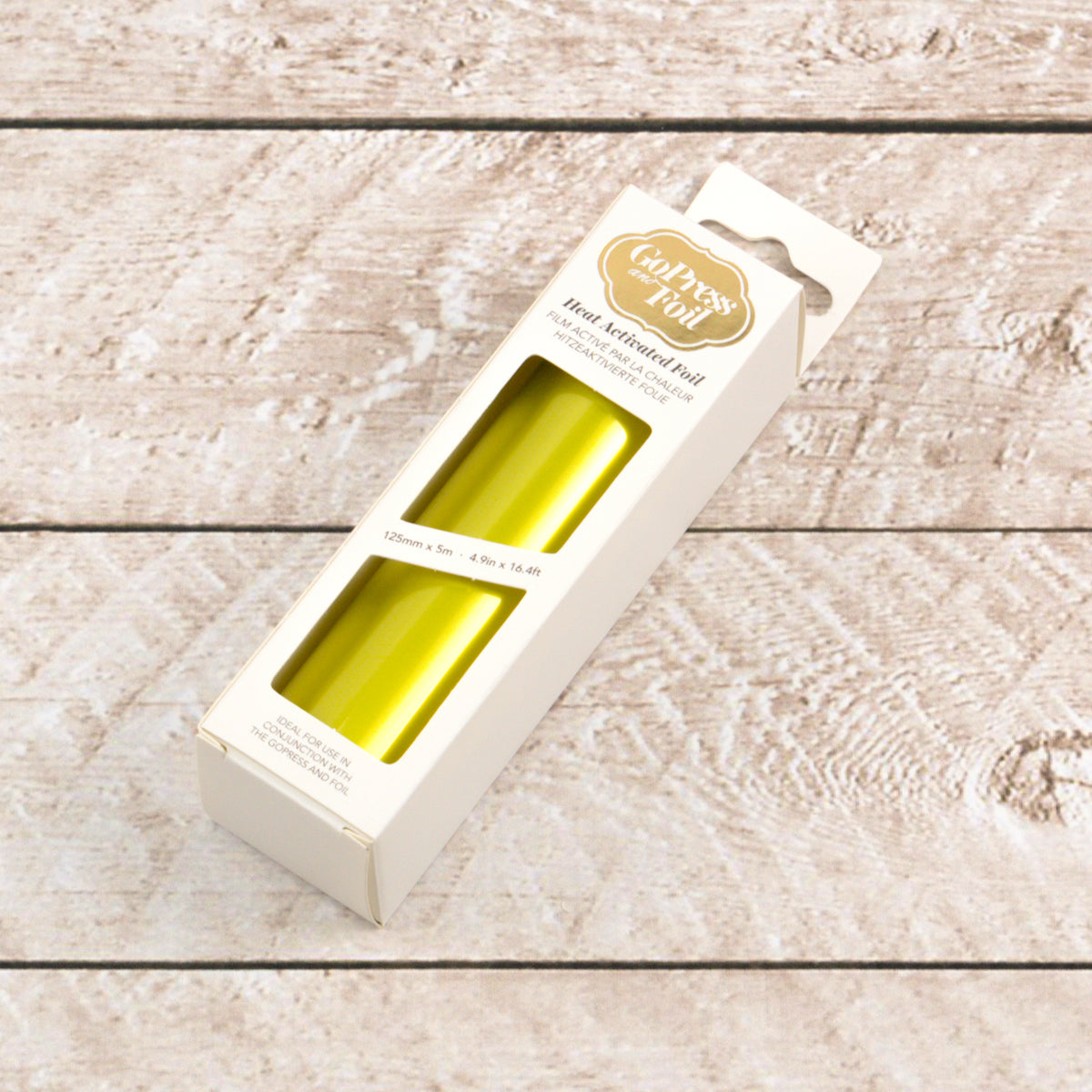 Designed for use with the GoPress and Foil machine, this beautiful yellow, heat activated foil is perfect for use along with Hotfoil Stamps to create gorgeous elements for cards, scrapbooking pages and off the page projects.