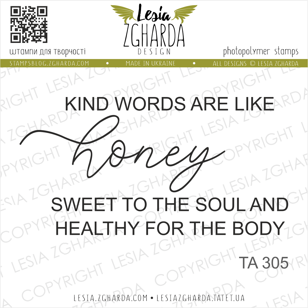 Lesia Zgharda Sentiment Stamp Set Kind Words are like Honey